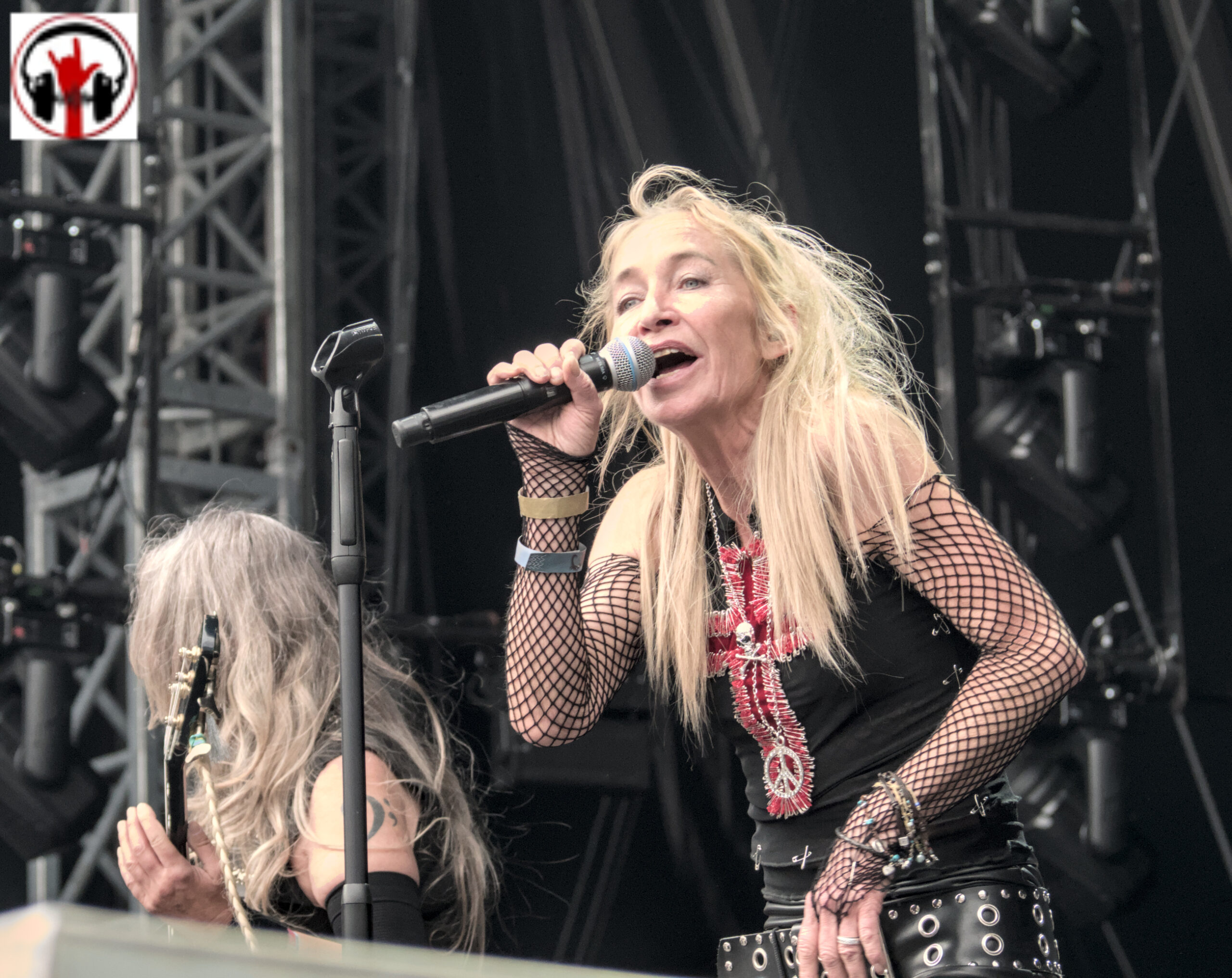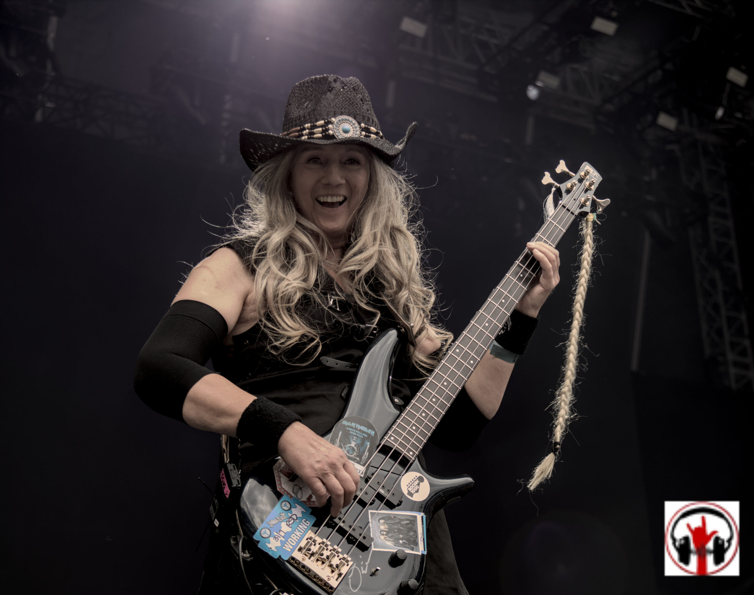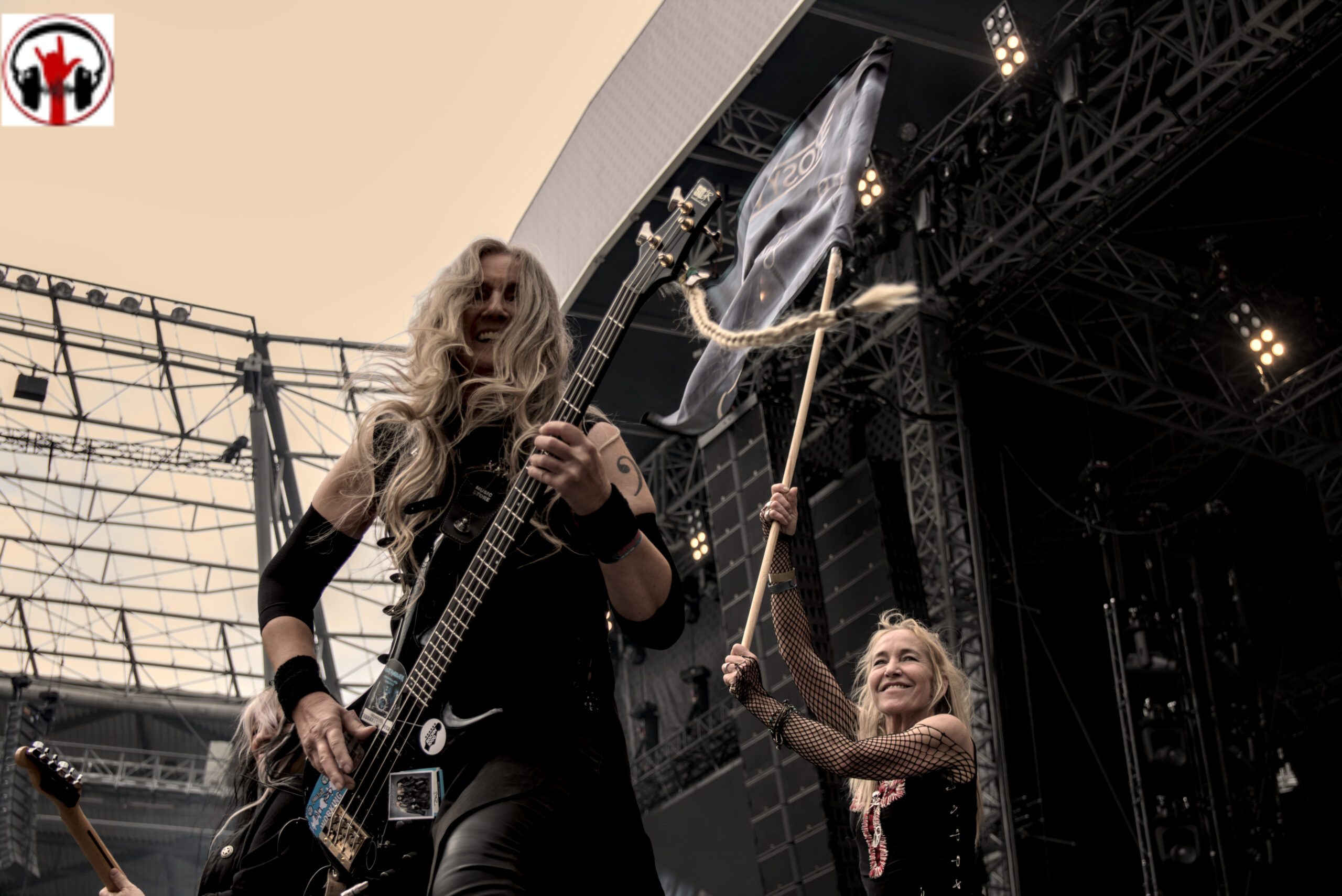 Um 15:30 Uhr startete der Konzertmarathon dann mit Rosy Vista. Die aus Hannover stammende Band um Gitarristin Anca Graterol, die in Hannover für Ihre Stadionhymne „96, alte Liebe“ bekannt ist, wurde 1983 als erste deutsche reine Frauen- Hardrockband gegründet und spielte schon Konzerte mit Uriah Heep, Mötley Crüe und Bon Jovi. Eine weitere Verbindung zu den Scorpions ist Barbara Schenker, die 2023 verstorbene Schwester des Scorpions Gitarristen. Sie hat bei Rosy Vista früher Keyboard gespielt. Für mich passt die Band mit Ihrem melodischen Hardrock sehr gut ins heutige Billing. Anfang des Jahres veröffentlichten Rosy Vista Ihr Album F.O.R.T.Y. aus dem auch einige Songs ins sich langsam füllende Stadion geschmettert wurden. Natürlich gab es auch ältere Songs wie „Poor Rosy“ und „Master of Control“. Ein schöner Auftakt in einen Tag voller legendärer Momente. Sängerin Andrea Schwarz war nach Ihrer Show auch im Innenraum anzutreffen, wo Sie sich die anderen Konzerte anschaute.