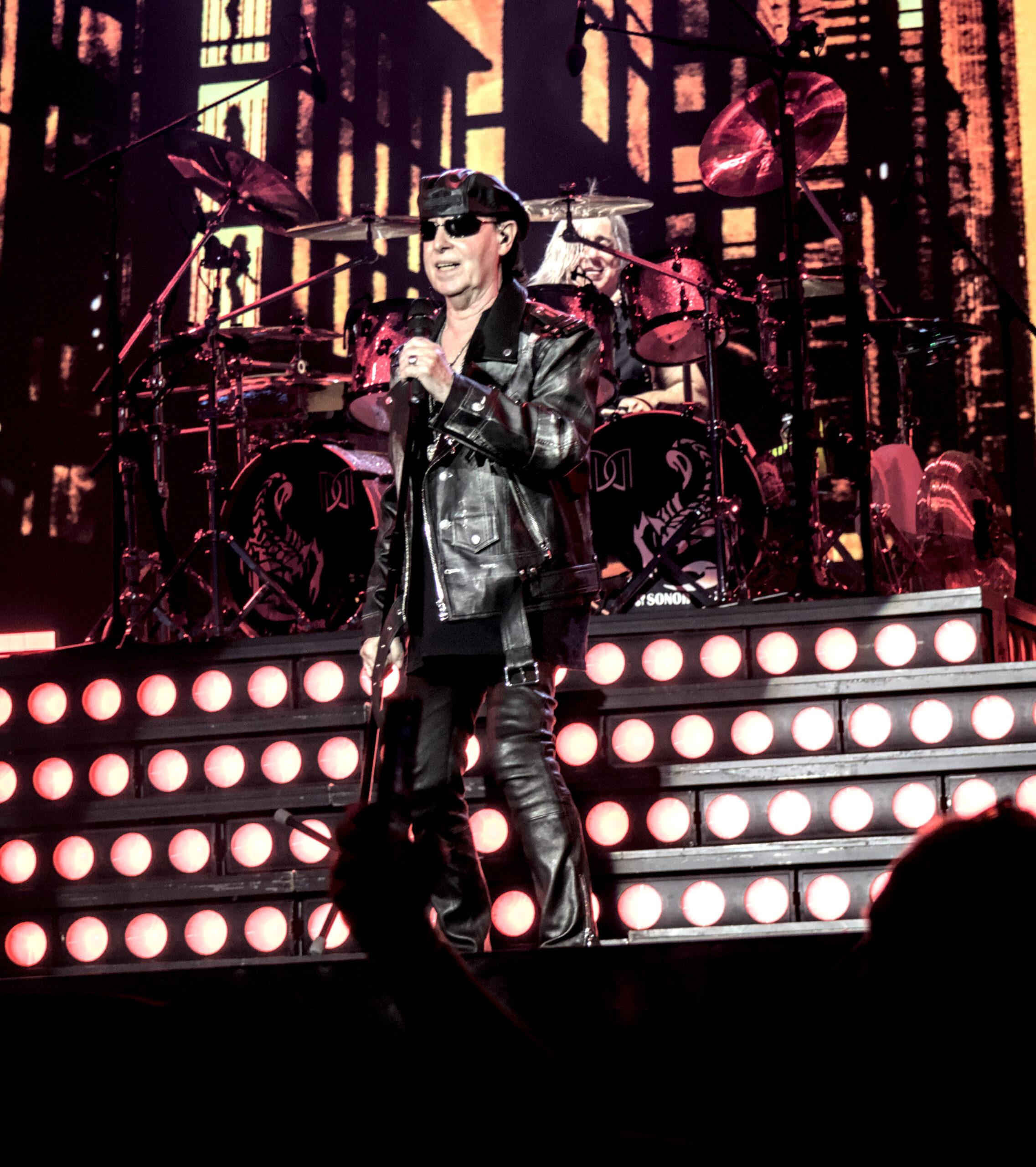 Selbstredend wurden alle wichtigen Klassiker gespielt, unterstützt von einer fantastischen Videoproduktion und einer tollen Lichtshow. Eigens dafür wurden beim Einlass Armbänder verteilt, die ferngesteuert zum Leuchten gebracht werden konnten. Das war ein wunderschöner Anblick bei einem vollen Stadion. Besondere Gänsehautmomente waren „Still Loving You“ und als das Publikum den Refrain von „Send me an Angel“ mitsang. Mein absolutes Highlight und emotionalster Moment war aber „Wind of Change“. Gefühlt die gesamte Arena hat mitgesungen und Video sowie Lichtshow ergänzten das perfekt. Die Atmosphäre in der Arena war etwas ganz Besonderes. Ich hatte den ganzen Song über Gänsehaut. Zwischendurch gab es ein extra langes Drum Solo von Mikkey Dee, der eindrucksvoll sein Können präsentierte.