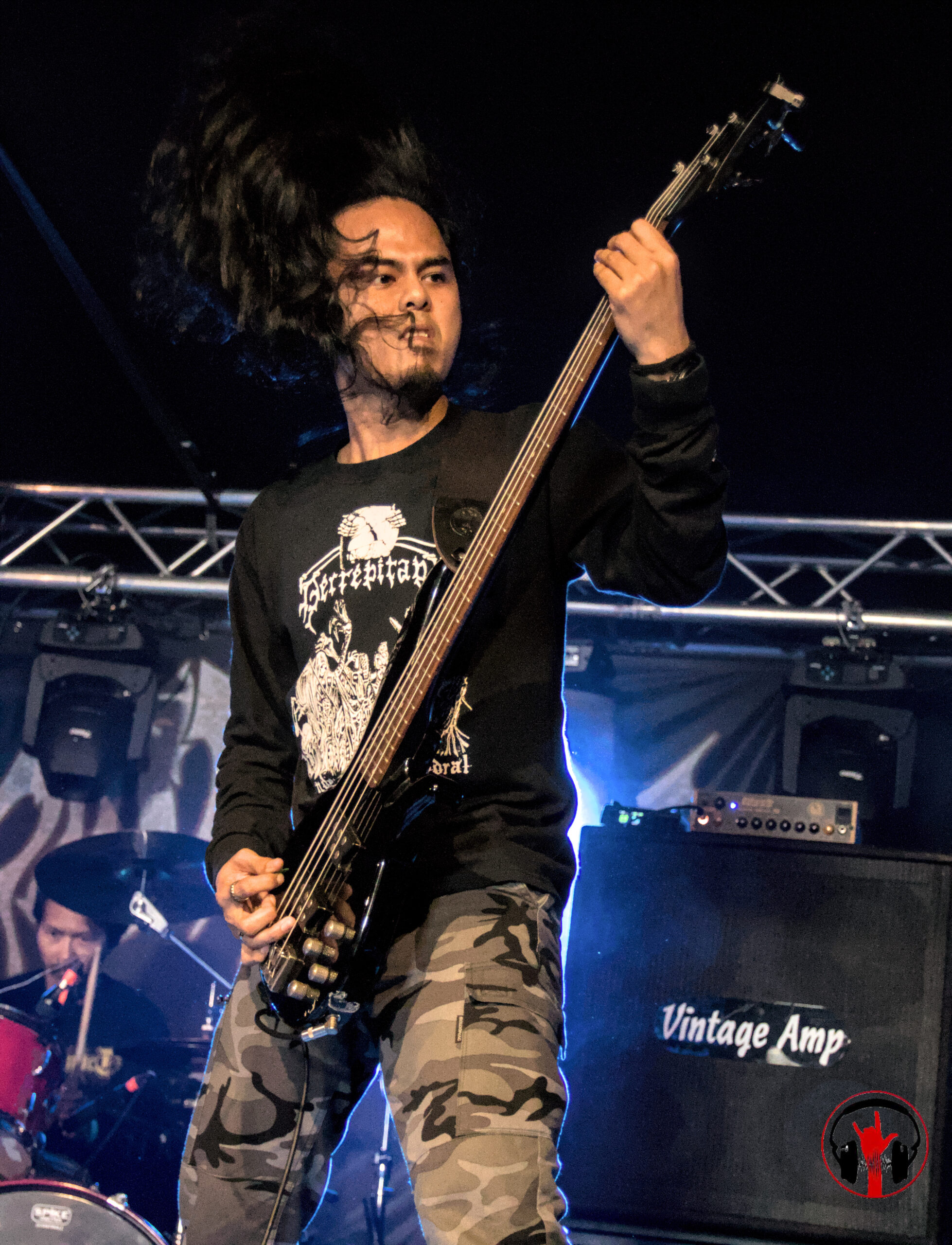 Die Bühne ist überdacht und bietet so auch bei schlechtem Wetter bestes Festivalfeeling. Bei der diesjährigen Ausgabe war das Wetter fast perfekt. Trocken, nicht zu kalt und nicht zu warm. Es gab Essen und Getränke zu absolut Fanfreundlichen Preisen und dank einem eingespielten Team auch ohne nennenswerte Wartezeiten. Vor der Halle sind auch genug überdachte Sitzgelegenheiten um zu essen oder sich zu unterhalten. Musikalisch gibt es Death und Blackmetal mit einigen farbtupfern in Form von Thrash und Pagan auf die Ohren. Diese Mischung gefällt mir gut. Die Halle ist bei jeder Band gut gefüllt, aber nie überfüllt. So kann man sich gut bewegen und auch zwischendurch mal entspannt ein neues Getränk holen.