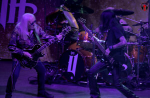 Die erste Band des Abends waren Heavy Pettin‘. Eine Band aus Glasgow. Die Band hatte sich vor einigen Jahren aufgelöst und nun mit einem neuen Album wieder zusammengefunden. Die Kapelle spielt sehr guten Heavy Metal und Rock ’n‘ Roll. Sehr mitreißende wurde die Musik präsentiert und animierte zum mit Rocken. Also richtig gute Stimmung, nicht nur auf der Bühne , auch im Saal. Der Sänger wirbelte den Mikrofon Ständer wie ein Derwisch herum, machte viele Ansagen und das Publikum hing an seinen Lippen. Leider betrug die Spielzeit nur eine halbe Stunde. Ich war traurig, als die Band nach nur sechs Songs die Bühne verließ.