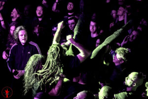 Vor der Beginn der Show und in der Pausen, habe ich mich mit einigen Bekannten unterhalten und viele sind wegen Peeling Flesh zu dieser Show gekommen. Mir selber hat diese Band vorher nichts gesagt. Die Intro Melodie alla Star Wars erweckt nicht nur mein Interesse. Peeling flesh betreten die Bühne und sofort geht in der Menge der Moshpit los. Peeling flesh sind Drum, Vocals und 2 Gitarristen. Das Publikum geht ab und scheint diese Art von Sound zu mögen. Für mich als Death Metal Fan ist der Sound gewöhnungsbedürftig, das das Ganze in Richtung Hardcore Punk und teilweise Rap geht. In der Halle ist 40 min Party inkl. Moshpit, Wall of Death und Circlepit.
