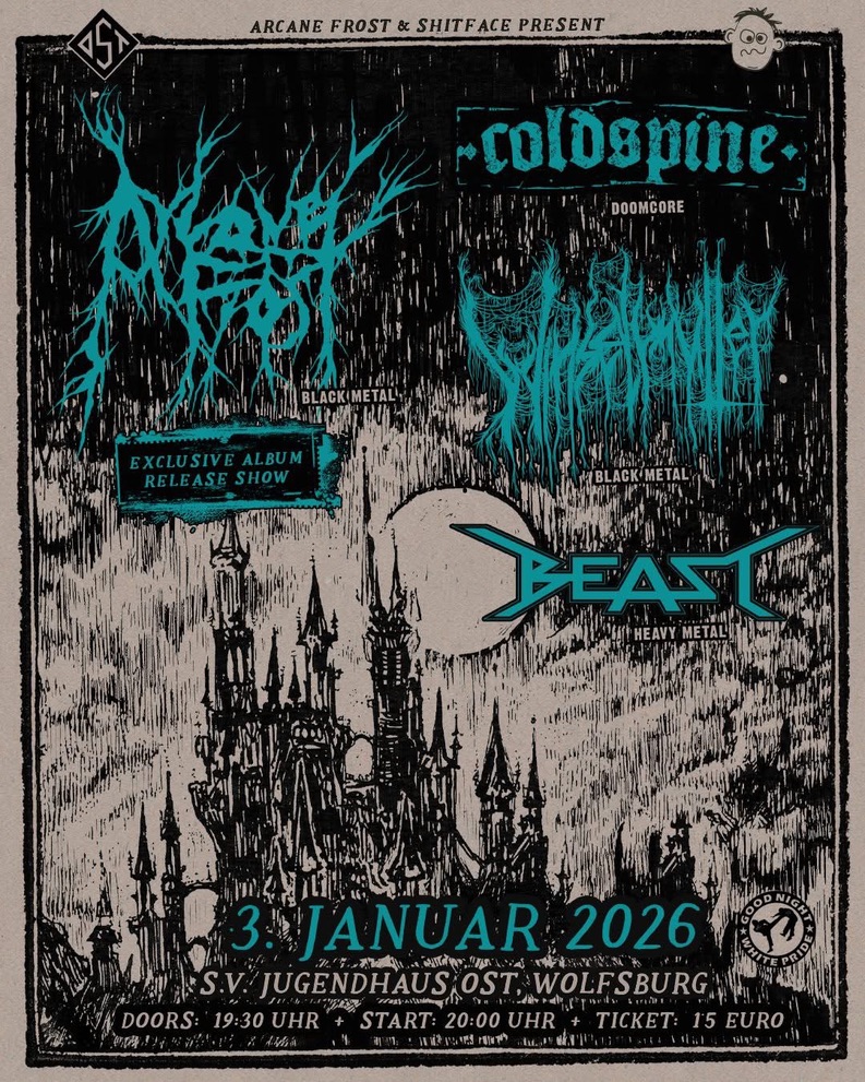 Das neue Jahr startet sehr gut, am Samstag den 03. Januar findet im Jugendzentrum Ost ab 20 Uhr, das Release Konzert vom Debut Album „Night’s cavalry“  der Wolfsburger Blackmetal Band Arcane frost statt.