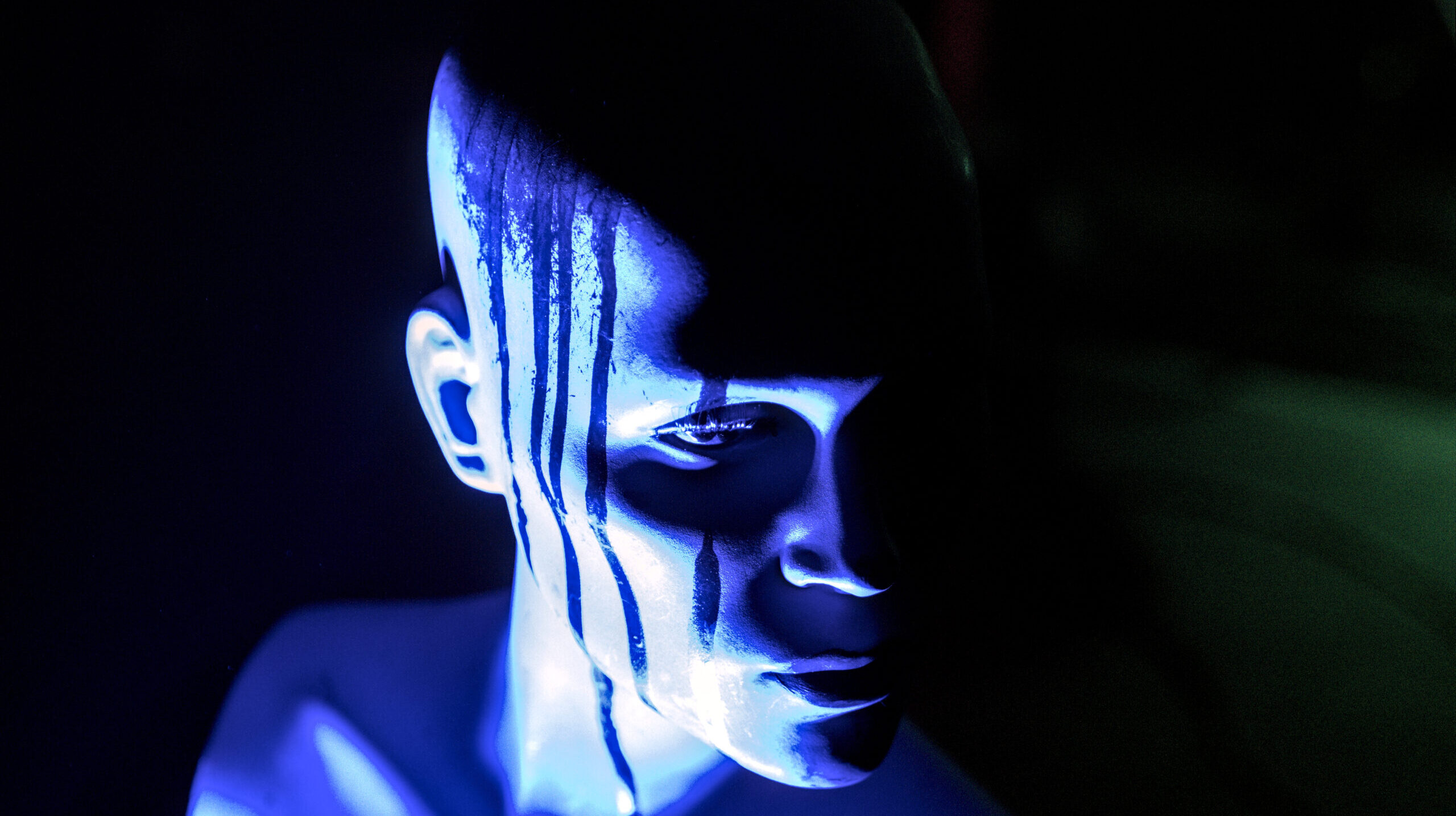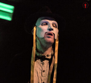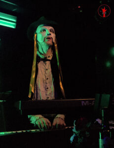 Die vier Mitglieder vom Hexenbrett betreten die Bühne. Alle haben Ihr Gesicht hinter einer Maske oder Mütze versteckt, die Bühne ist mit diversen Deko’s versehen.