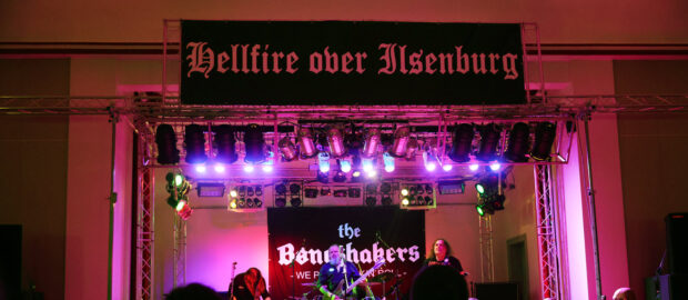 Am 21.03.2026 fand das IV. Hellfire over Ilsenburg im Haus der Vereine statt. Mein erstes Hellfire over Ilsenburg war die IV. Auflage dieser Konzertreihe. Sie wird von lokalen Enthusiasten und Time for Metal e.V. auf die Beine gestellt und kann sich sehen lassen. Vor dem Haus der Vereine  war ein Cateringpavillion aufgebaut, an dem es u.a. Steaks und Bratwurst frisch vom Grill im Brötchen gab. Dazu auch eine vegetarische Pfanne für Leute ohne Appetit auf Fleisch. Im Foyer begrüßten die engagierten Mitglieder von Metality den eintreffenden Gast. Im Saal waren Bar, Merchtable und eine Plattenbörse aufgebaut. Die Bühne befand sich gegenüber der Bar. Der Raum ist großzügig dimensioniert, sodass sich die Zuschauer nicht zu sehr auf der ausverkauften Veranstaltung drängen mussten.