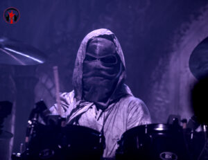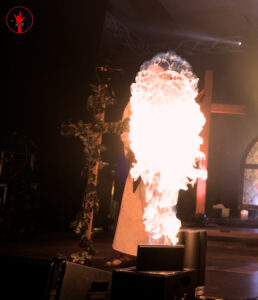 Jetzt wird es düster, finster und heilig. Es ertönen die Kirchenglocken und die Band fordert Ihre Jünger zum Erscheinen auf. Mein persönlicher Headliner des ersten Tag betreten die Bühne aus Bamberg. Die Black Metal Band hat sich 2017 gegründet und promoten Ihr fünftes Album was am 03.04.2026 erschien. Die Bühne ist dunkel gehalten und im Hintergrund leuchtet ein Rotes Kreuz. Die Band erscheint komplett vermummt und legen sofort los. Noise erscheint als Art Bischof und segnet seine Jünger (die Bandmitglieder) bei dem Song Show mercy vom aktuellen Release. Noise arbeitet sehr viel mit den Händen bwz. drückt dadurch die Gesten sehr gut aus. Man merkt Non Est Deus live nicht an, das Sie ohne Bassisten auskommen, der Sound ist sehr gewaltig und die Pyros werden geschickt eingesetzt. Es darf natürlich der Klassiker Fuck you god vom Release Impious nicht fehlen, dort wird alles aufgefahren: Pyro, Nebel und Weihwasser. Jetzt heißt es … Bier.