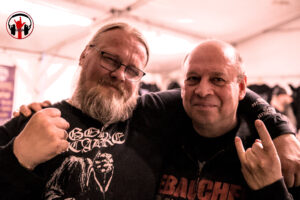 Nach 2 Bands mußte ich mir das Außengelände anschauen. Am Cudgel-Stand haben wir Tobi vom Party.San und Cudgel getroffen, wir drei haben uns angenehm unterhalten bzw. Informationen ausgetauscht.